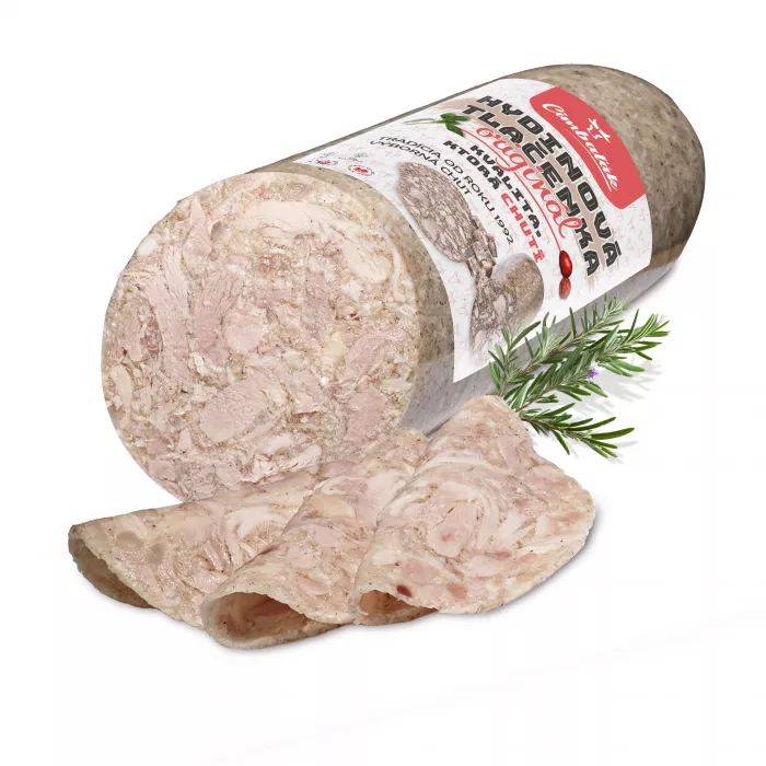 Zloženie: 70 % hydinové mäso, vývar, bravčové kože, cesnak, kuchynská soľ, mleté čierne korenie. Výživové údaje na 100 g výrobku: Energia: 446 kJ/106 kcal; Tuky: 4,7 g; z toho nasýtené mastné kyseliny: 1,6 g; Sacharidy: 0,6 g; z toho cukry: 0,0 g; Bielkoviny: 12,5 g; Soľ: 1,9 g.