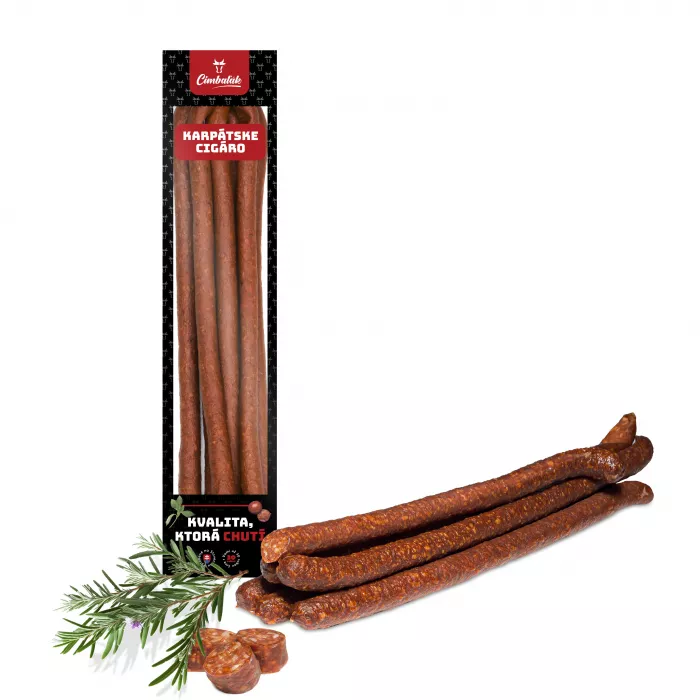 Zloženie: bravčové mäso 69%, bravčová slanina 16%, hovädzie mäso 10%, jedlá soľ, cesnak, koreniny, extrakty korenín, dextróza, farbivo (karamel III), stabilizátor (glukóno-delta-laktón), zvýrazňovače chuti (glutaman sodný, dinátrium 5´-ribonukleotidy); štartovacia kultúra, konzervačná látka (dusitan sodný), antioxidant (kyselina askorbová). Výživové hodnoty na 100 g výrobku: Energia: 1499 kJ/357 kcal; Tuky: 33,6 g; z toho nasýtené mastné kyseliny: 11,7 g; Sacharidy: 1,9 g; z toho cukry: 0,7 g; Bielkoviny: 12,0 g; Soľ: 3,5 g.