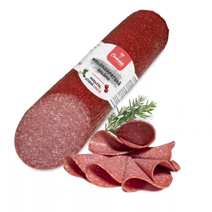100 g hotového výrobku je vyrobené zo 105 g mäsa. Zloženie: bravčové mäso, bravčová slanina, hovädzie mäso, jedlá soľ, dextróza, korenie, bravčová bielkovina, antioxidant E316, zvýrazňovače chuti a vône E621, E635; extrakty korenia, cesnak, farbivo E120, slnečnicový olej, dymová aróma, štartovacia kultúra, konzervačná látka E 250. Výživové hodnoty na 100 g výrobku: Energia: 2820 kJ/671 kcal; Tuky: 69,1 g; z toho nasýtené mastné kyseliny: 24,4 g; Sacharidy: 1,5 g; z toho cukry: 1,0 g; Bielkoviny: 11,3 g; Soľ: 3,8 g.100 g hotového výrobku je vyrobené zo 105 g mäsa.