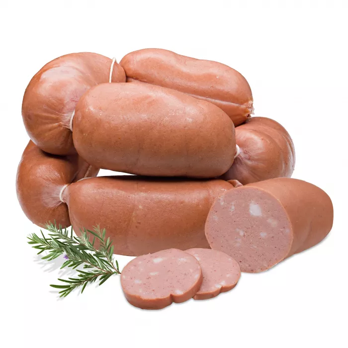 Zloženie: 35% hydinové mechanicky separované mäso, bravčové kože, 10% bravčová slanina,pitná voda,škrob,jedlá soľ,konzervačná látka E250, cesnak, bravčová bielkovina,stabilizátory E450,E 466, E 508; želírujúca látka E 407 a, zahusťovadlo E 412, zvýrazňovače chuti E621, E635; emulgátor E1450, antioxidant E300,extrakty korenín,dymová aróma,farbivo E120, regulátory kyslosti E 262, E 331. Výživové údaje na 100 g výrobku: Energia: 995 kJ/237 kcal; Tuky: 20,8 g; z toho nasýtené mastné kyseliny: 8,1 g;Sacharidy: 4,7 g; z toho cukry: 0,0 g;Bielkoviny: 7,9 g; Soľ: 1,6 g.
